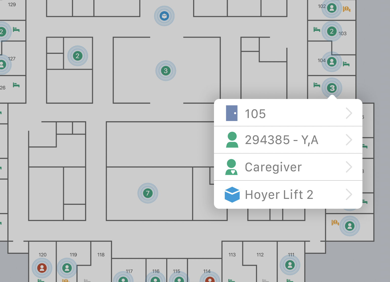 Receive custom reports on asset, staff and/or resident locations within your facility