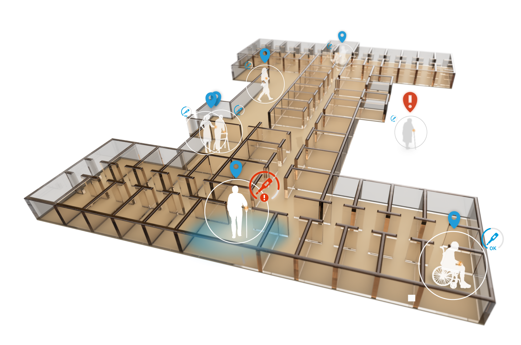 Alert care team to falls the moment they occur and be aware of fall events that are self-recovered by residents.