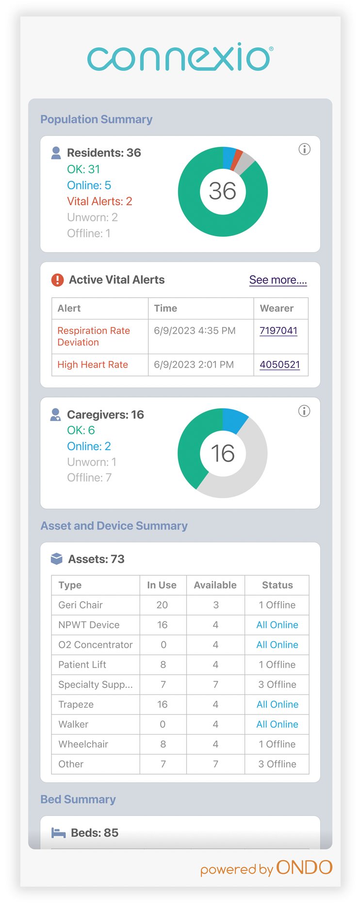 ONDO Systems is transforming nursing care with Connexio, an affordable AI-driven IoT platform that optimizes workflows, reduces risk, and improves outcomes. Our customizable suite of solutions monitor vitals, detect and prevent falls and infections, manage incontinence, and track assets and personnel.