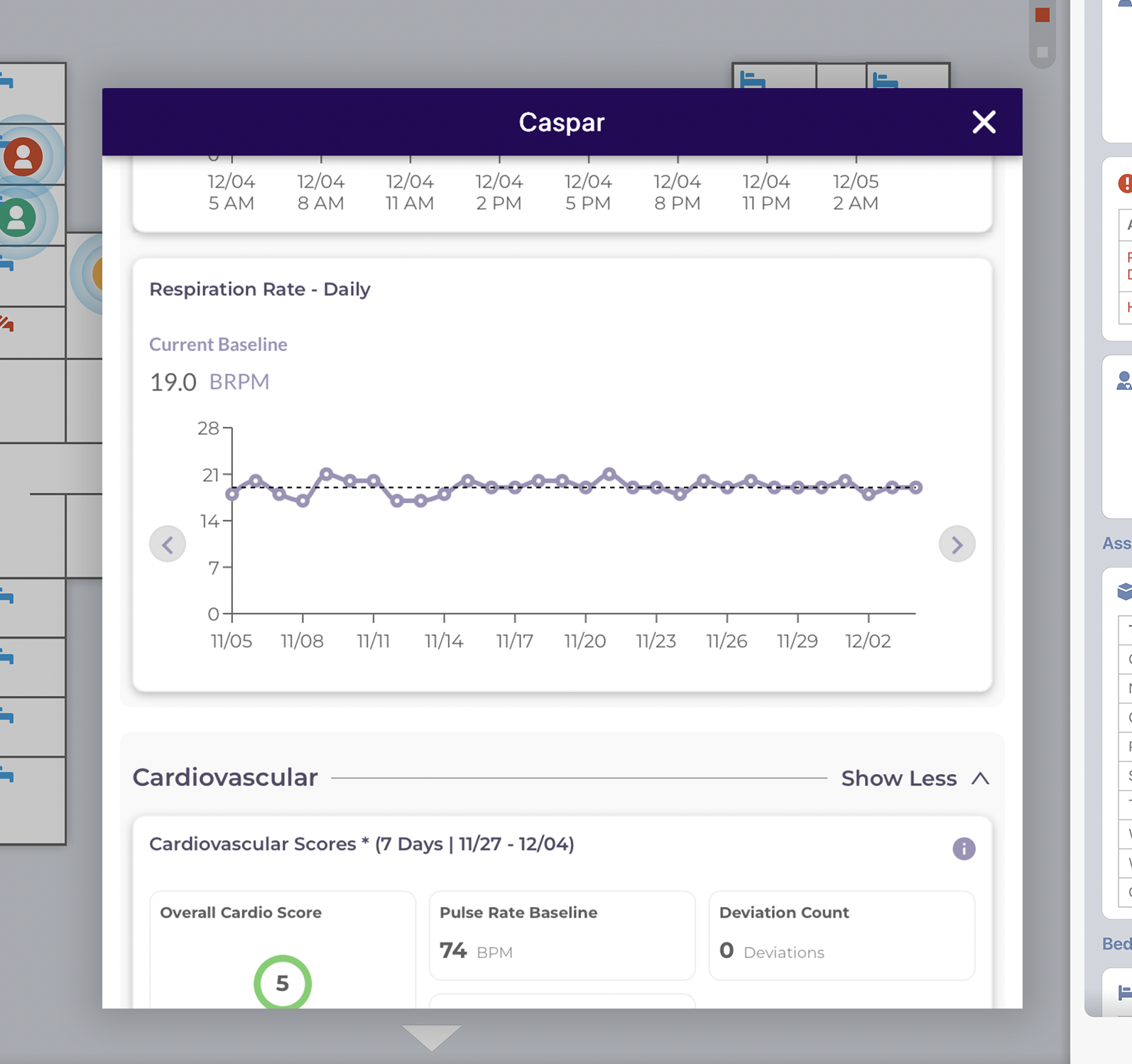 Generate custom reports for individual resident pulmonary, pulse and bed activity baselines to isolate deviations and provide proactive care.